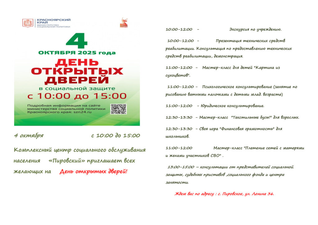 План мероприятий на День открытых дверей